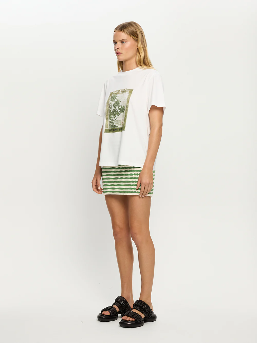 The Byron Tee is a relaxed silhouette featuring a crew neckline, short sleeves and a placement green palm tree motif across the front. Crafted from 100% organic cotton, it combines casual ease with a touch of coastal nostalgia — a timeless staple for everyday wear. Style with denim shorts or relaxed pants for everyday.